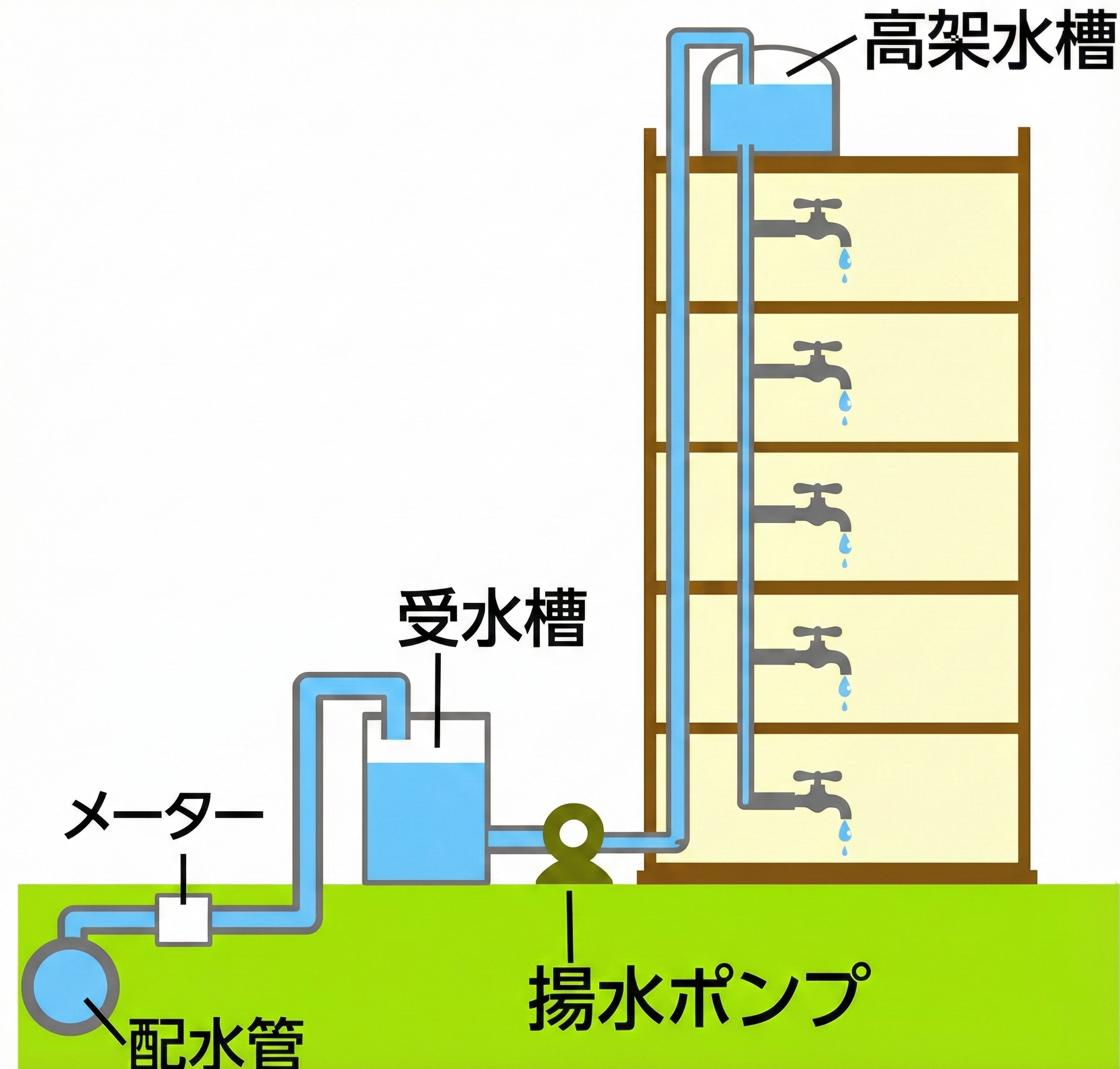 2. 維持費の削減: 年1回の受水槽清掃義務(※10トン以下は任意ですが推奨)や、定期的な水質検査が不要になり、ランニングコストが下がります。