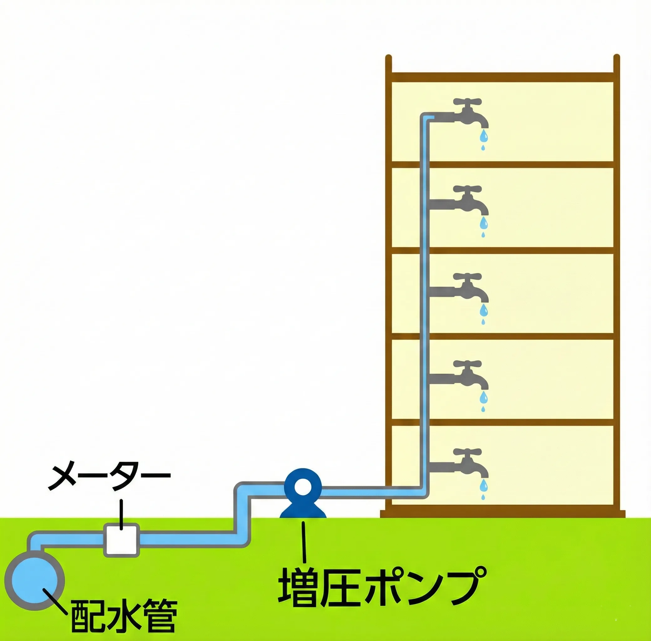 | 役割 | 水道本管 → 直接各部屋へ増圧して送水 |