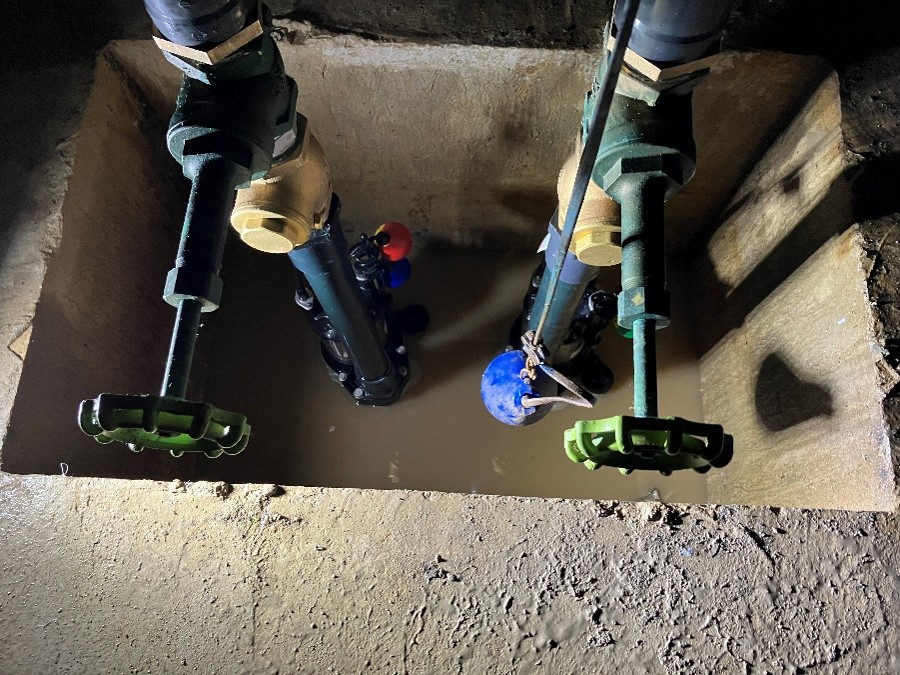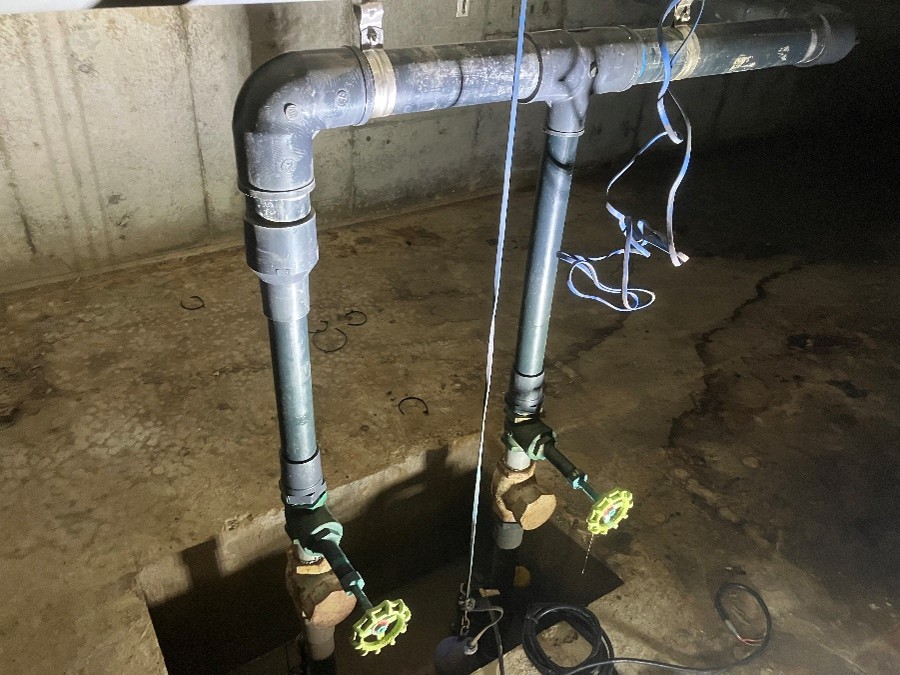 今回は湧水槽の排水ポンプ交換です。片方のポンプが故障していたので早めの工事をご依頼いただき、お問い合わせをいただいてから1週間ほどで工事となりました。既存のポンプの1つが釜場の壁に寄っていてフロートの作動に問題が出かねない状態だったので設置位置を修正して新しいポンプの配管(接地)をしました。 |