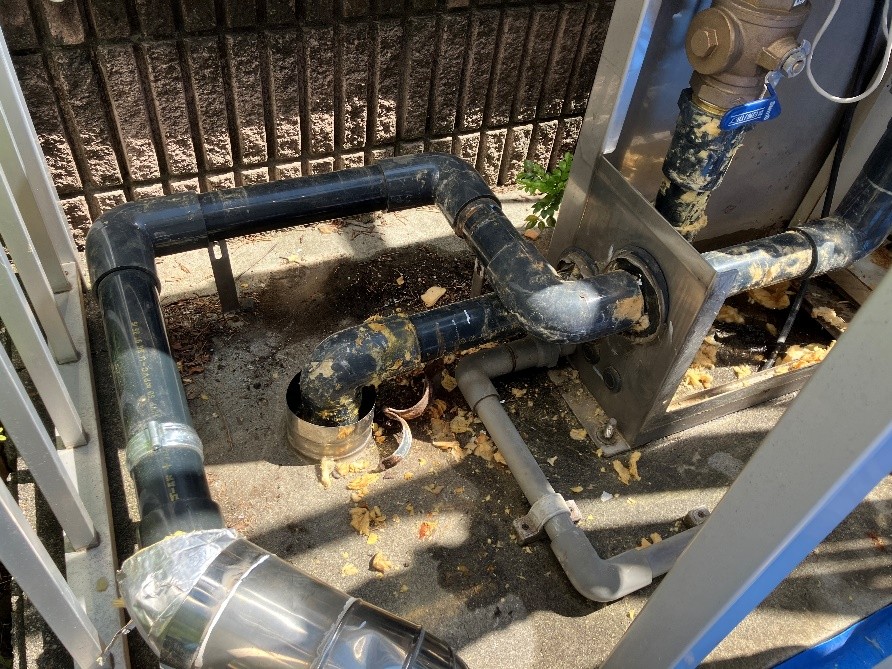 今回はまだ新しいマンションの初交換となる増圧ポンプ交換工事でした。花壇のすぐ脇に設置されていてポンプ右側には手を入れることができなかったため、やぐらを組んで撤去と据付け作業をしました。配管作業も保温工事の仕上げのラッキング作業もベテランの職人さんが綺麗に仕上げてくれました。ユニック車を使わずに費用を抑えて良い工事ができました。 |