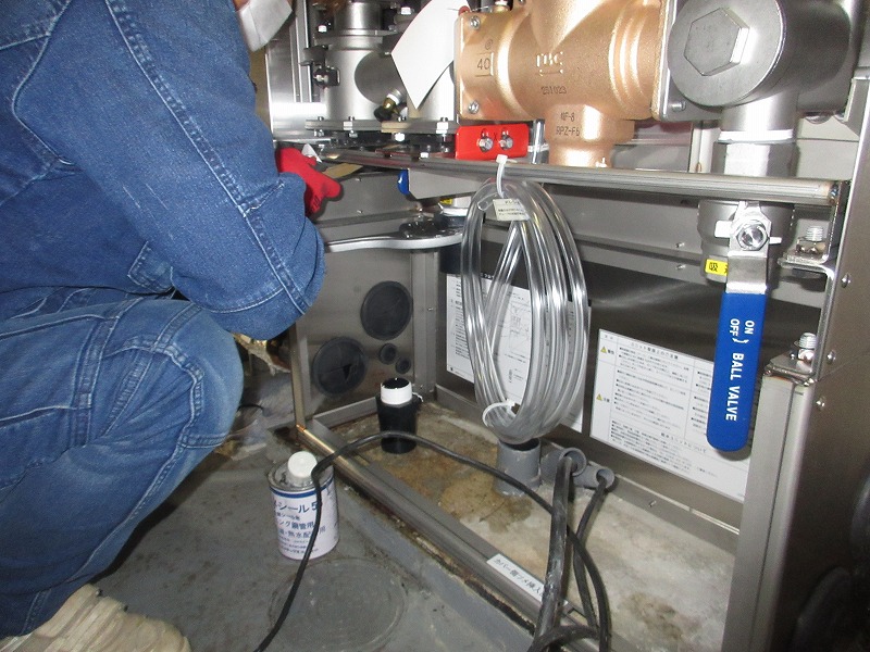 | 階段下のポンプ室でしたので、高さに制限があり搬出入に苦労しました。 | ||||||